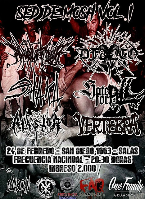 Esperamos a todos los sedimentos de Mosh el Viernes 24 de Febrero para refrescarlos en esta primera edición con las bandas más grotescas de la escena Underground nacional no te lo pierdas